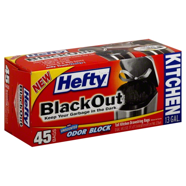 Hefty Blackout Kitchen Bags : Amazon Com Hefty Ultra Strong Tall Kitchen Trash Bags Blackout Unscented 13 Gallon 40 Count Packaging May Vary Everything Else : Ultra strong tall kitchen trash bags, blackout, unscented, 13 gallon, 40 count. Triple action technology helps these hefty kitchen trash bags resist leaks and tears, providing the highest puncture protection available in a flexible trash bag. The black color hides unsightly messes and the tough hefty material resists punctures, leaks, & tears! Blackout keeps your garbage in the dark. Ultra strong tall kitchen trash bags, blackout, unscented, 13 gallon, 40 count Hide unsightly messes in your kitchen garbage can with versatile hefty blackout kitchen trash bags.